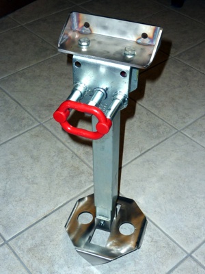 Basierend auf der Standard-AL-KO-Kurbelstütze haben wir einige Modifikationen und Verbesserungen entwickelt. Wir liefern die Stütze komplett mit Montagewinkel und aggressiver, absolut stand- und rutschsicherer Bodenplatte, deren Haltekraft durch zusätzliche Erdnägel nochmal erhöht werden kann.
